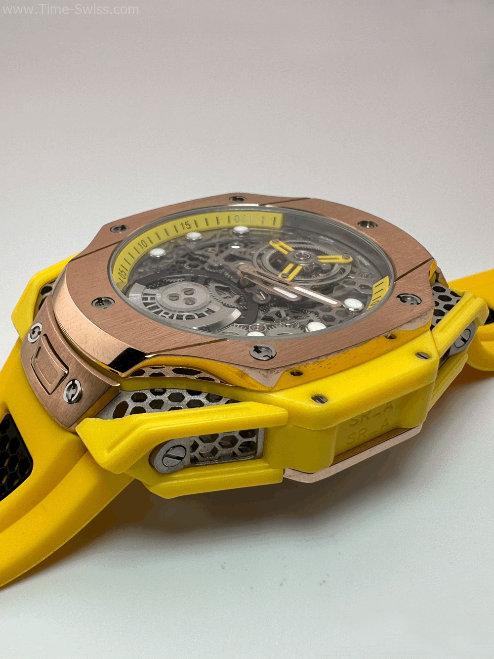 🔥นาฬิกาสวิส Hublot AAA ราคาถูก 🔥สำหรับรุ่นใหม่ของ Hublot เป็นแบบแนวทรงสปอร์ต ทรงเรียบๆ เป็นงานเกรด Top Swiss ที่ใกล้เคียงกับของแท้ในรุ่น นาฬิกาก๊อป Swiss Hublot งานสวิส(AAA) นาฬิกาข้อมือผู้ชายใส่ ที่เน้นโชว์หน้าปัดเปลือยเห็นเครื่อง ตัวเรือนและสายเป็นยางซิลิโคนสีเหลือง ที่โดดเด่น ภายนอกและภายในเหมือนของแท้ทุกรายละเอียด ทำออกมาสวยทั้งเรือนเป็นเอกลักษณ์เฉพาะ💥